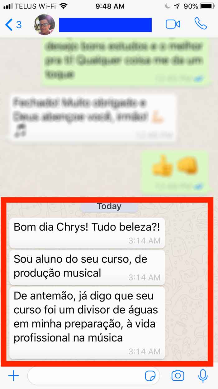 “Agora já estou trabalhando com áudio graças ao Chrys.”