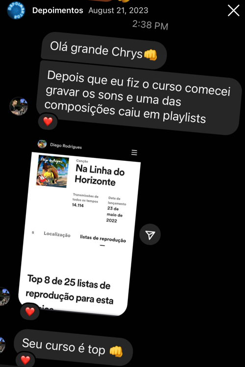 “O Curso de Mix e Master agregou demais na minha vida.”